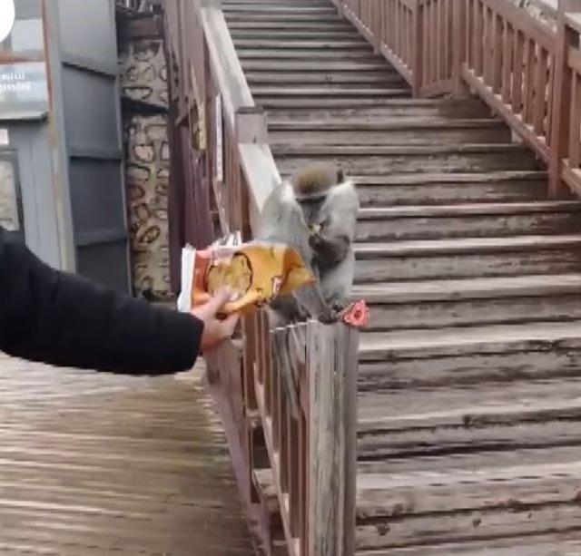 Daha önce ormanlık alanda görülen ve Doğa Koruma ve Milli Parklar (DKMP) ekiplerinin yakalamak için çalışma başlattığı maymun, bu kez Denizli’nin en çok ziyaret edilen noktalarından biri olan Seyir Tepesi’nde vatandaşlar tarafından fark edildi. Görgü tanıklarının cep telefonu kameralarına yansıyan görüntülerde, maymunun çevrede dolaştığı ve vatandaşların ilgisiyle karşılaştığı görüldü. Bazı vatandaşların maymuna şeker ve cips verdiği anlar dikkat çekti.