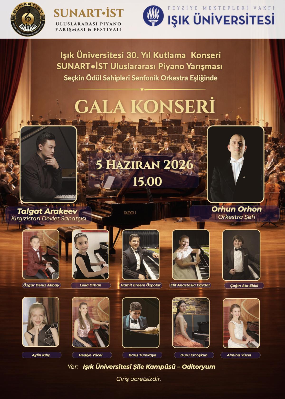 Konserde, SUNART•İST 2025 Uluslararası Piyano Yarışması’nın ödül sahibi seçkin genç piyanistleri sahne alacaktır.